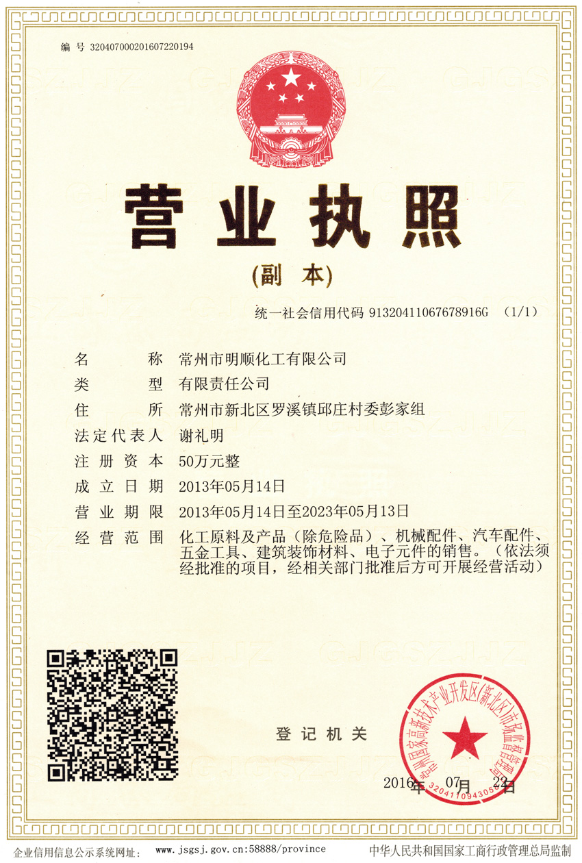 常州市明顺化工有限公司 版权所有(C)2020 网络支持 中国化工网 生意宝 网盛大宗 著作权声明 备案序号:苏ICP备2020061125号